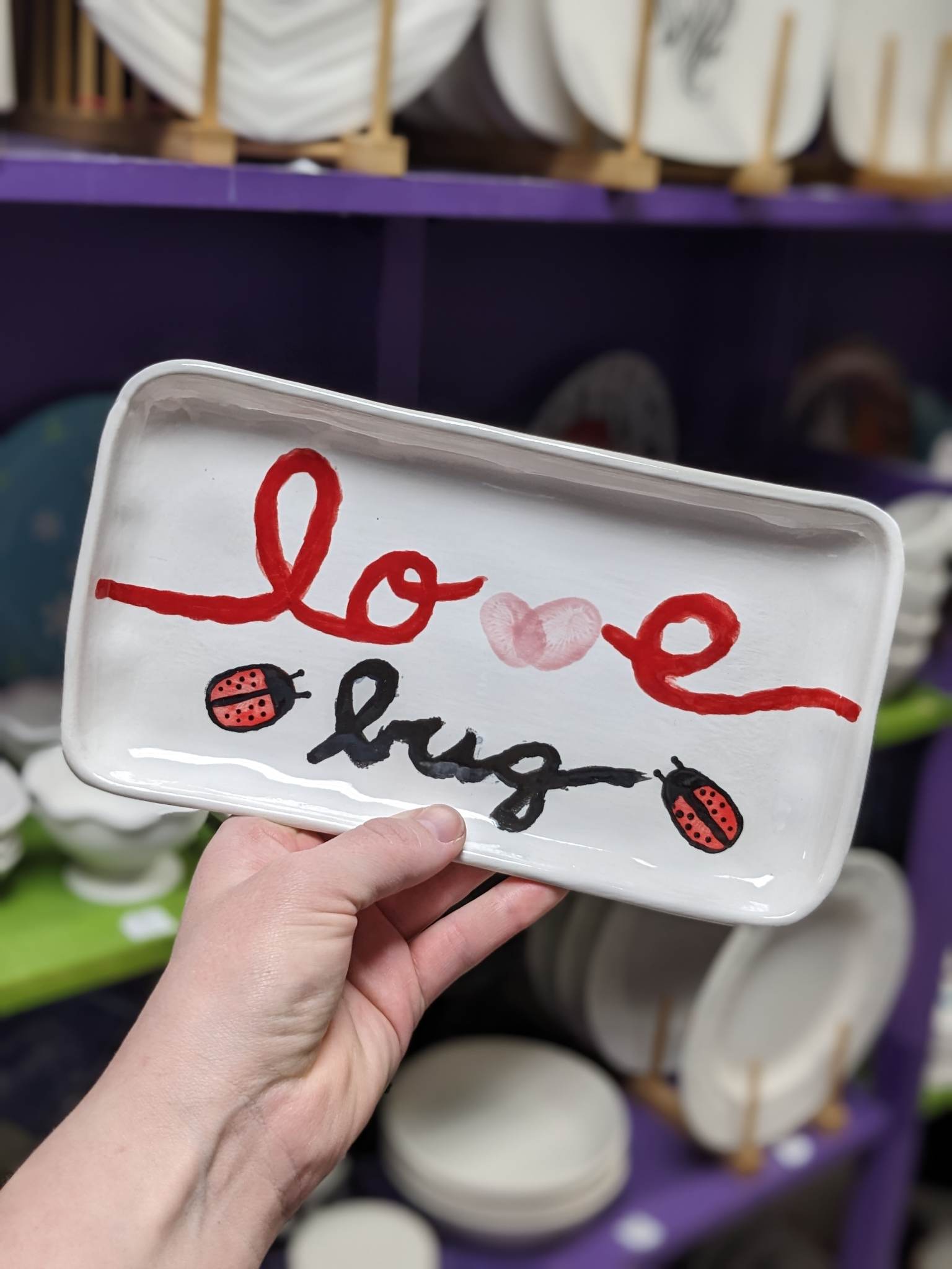 Need to take your piece home the same day? Ask about painting your pottery with acrylic paint. You can also take your pottery home and bring back another day to finish!
